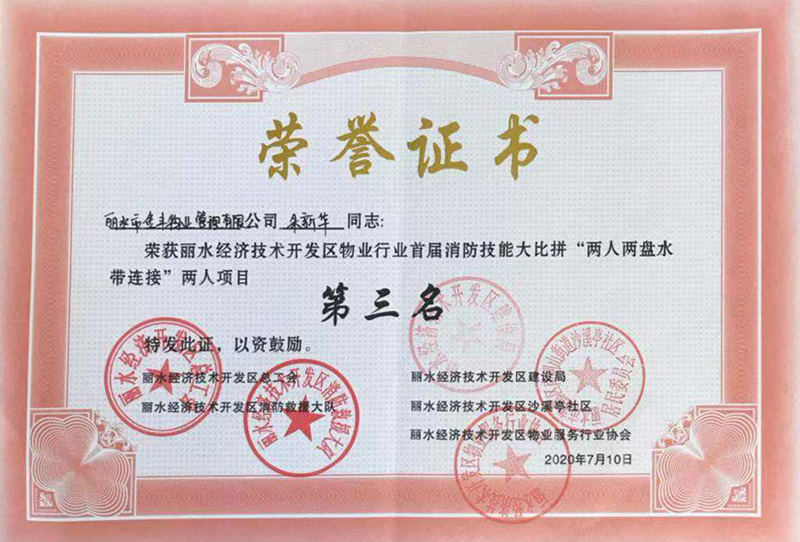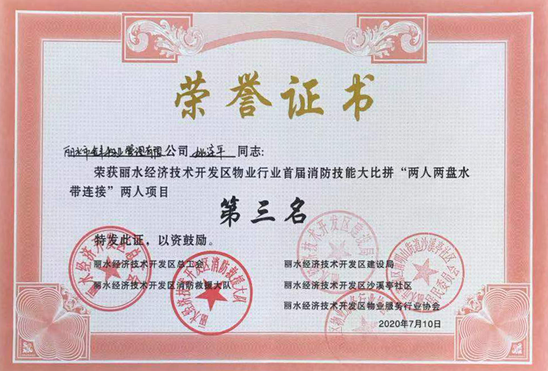 首屆消防技能大比拼“兩人兩盤水帶連接”第三名 2020-07-23 17:45:19 24 上一篇 : 首屆消防技能大比拼“室內(nèi)消防栓出水救火操”第三名 下一篇 : 先進(jìn)物業(yè)服務(wù)企業(yè)